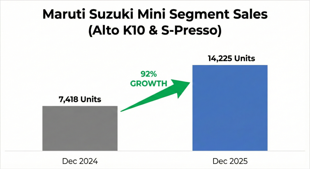 Maruti Suzuki has recorded a massive surge in the sales of its entry-level hatchbacks, the Alto K10 and S-Presso, in December 2025. The mini-segment sales have nearly doubled compared to the same period last year, signaling a strong revival in the small car market in India.